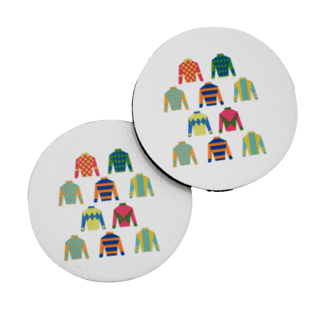 Talk to Derby to me with these festive and colorful Derby Silk car coasters!