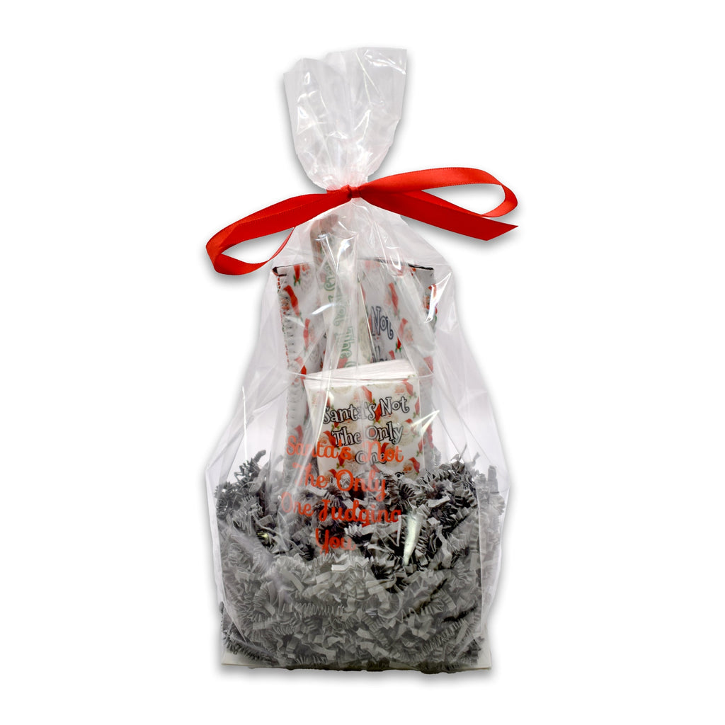 Santa's Not the Only One Judging You Wine Glass, Koozie, Nail File and Tissue Gift Basket