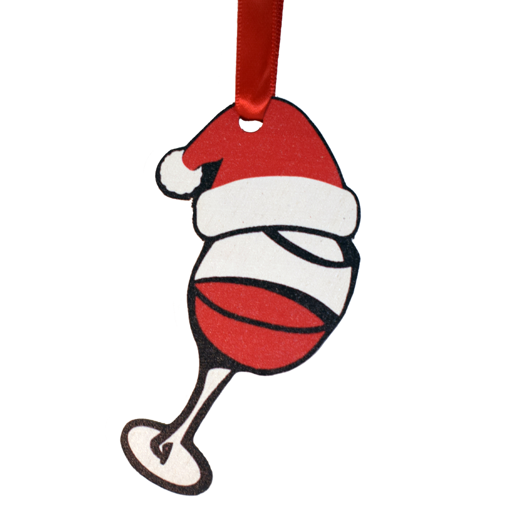 • Wine Glass with Santa Hat Ornament