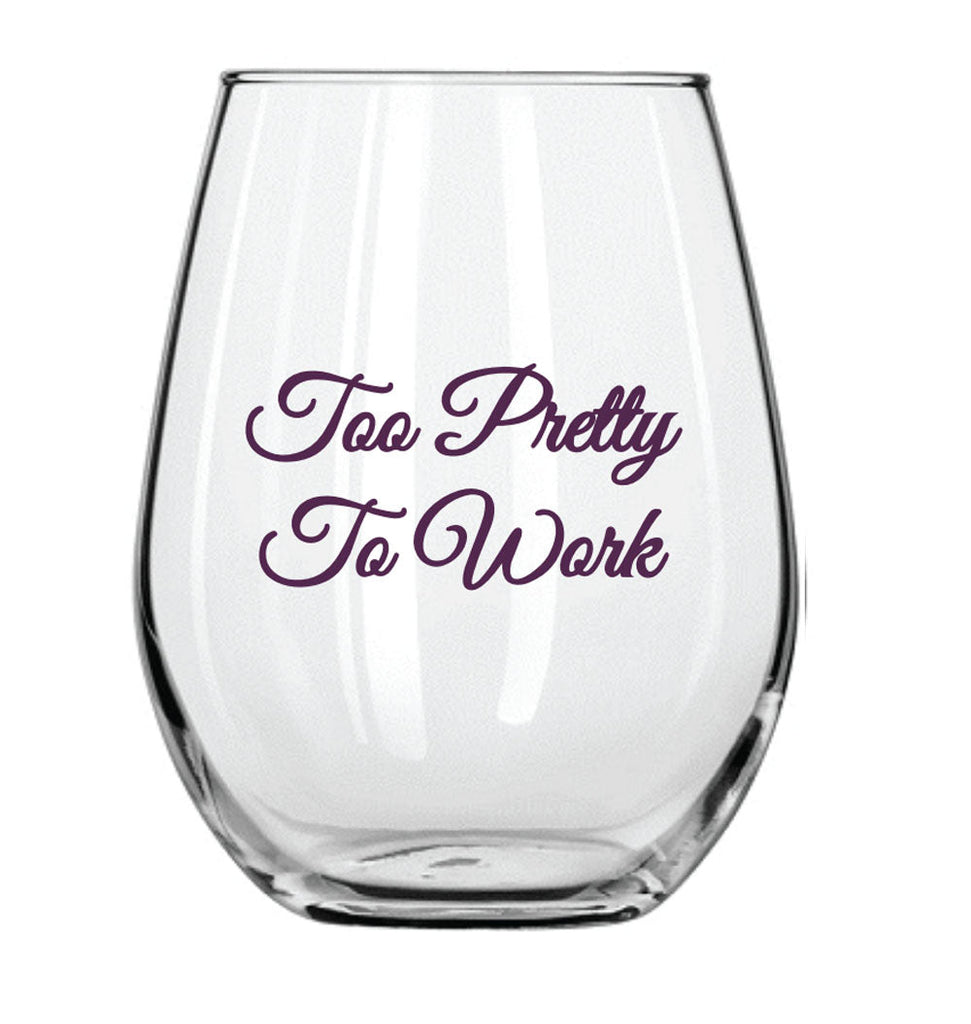 Women's Pink Kentucky Shape Socks with Too Pretty to Work Wine Glass Gift Basket